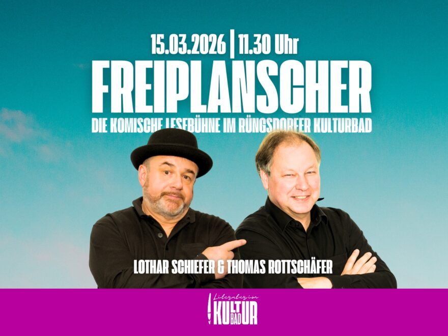 Zur Premiere unserer neuen Literatur-Reihe „FREIPLANSCHER – Die komische Lesebühne im Rüngsdorfer KulturBad“ am 15. März 2026 um 11.30 Uhr